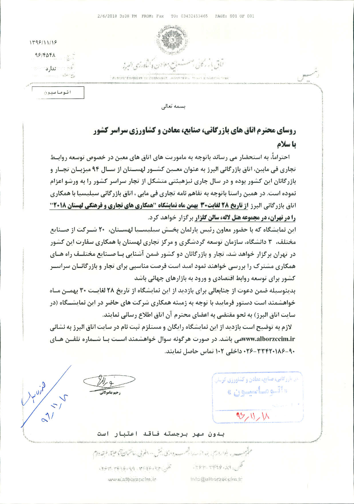 بازدید از این نمایشگاه رایگان و مستلزم ثبت نام در سایت اتاق البرز به نشانی www.alborzccim.ir می باشد.