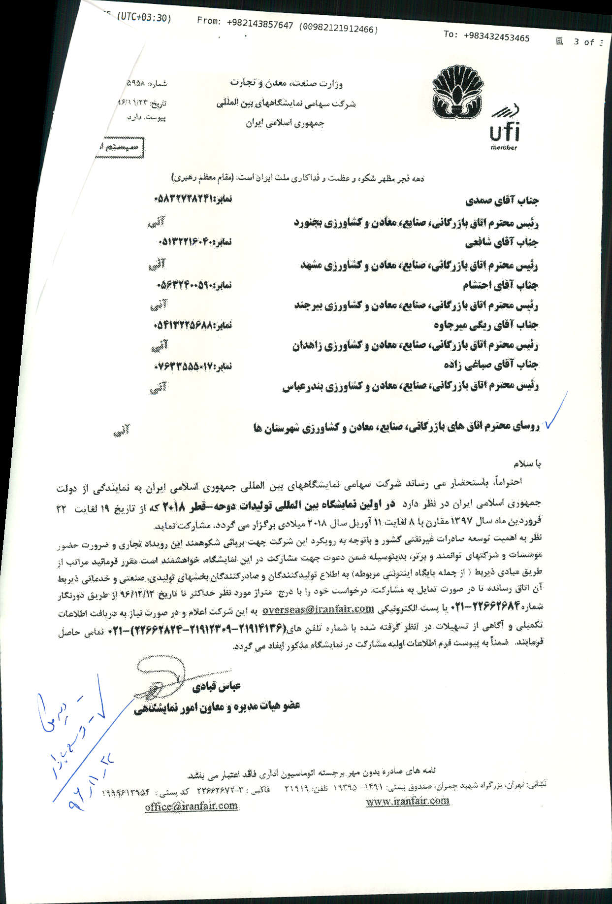 شرکت سهامی نمایشگاه بین الملی جمهوری اسلامی ایران به نمایندگی از دولت جمهوری اسلامی ایران در نظر دارد در اولین نمایشگاه بین المللی تولیدات دوحه – قطر 2018 که از تاریخ 19 لغایت 22 فروردین ماه سال 1397 برگزار می شود مشارکت نمایند.
